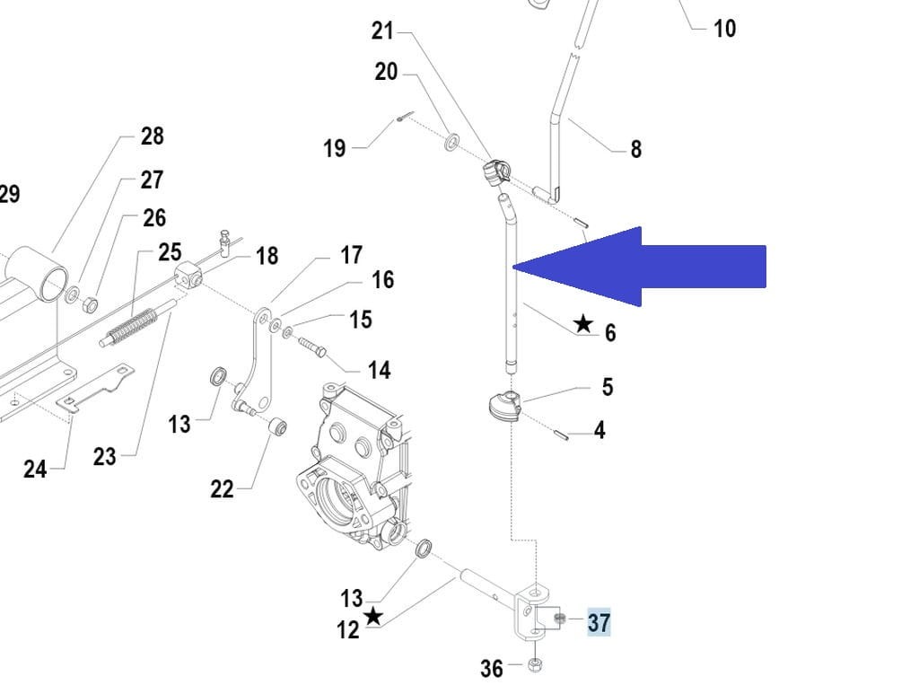 Dźwignia (krótka) włączania WOM do ciągników jednoosiowych BCS.