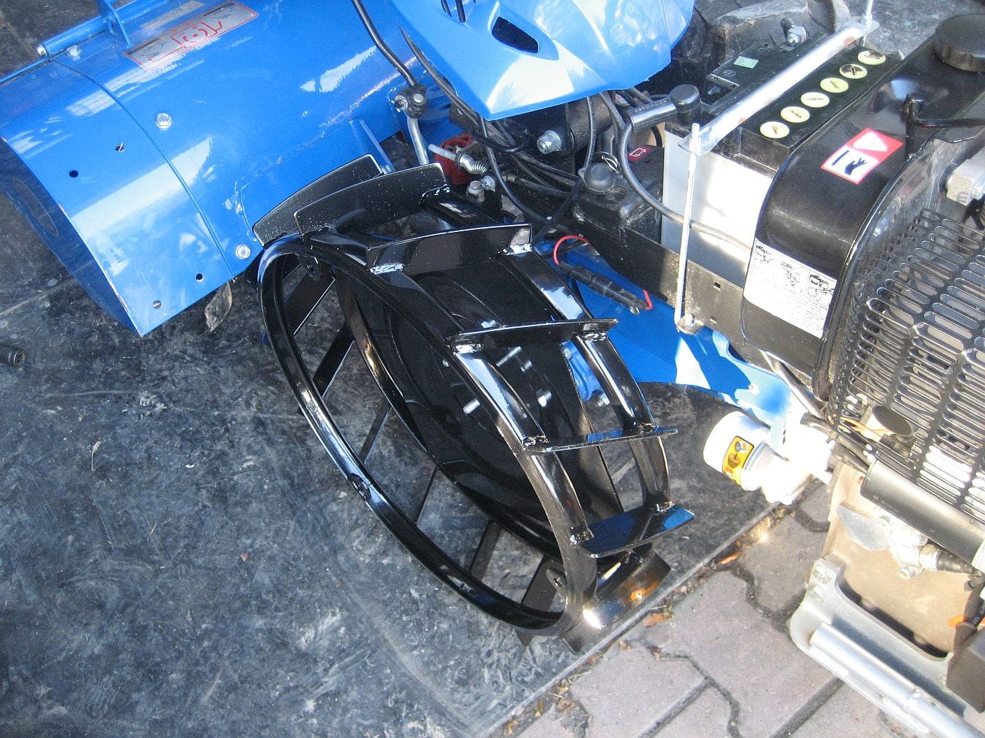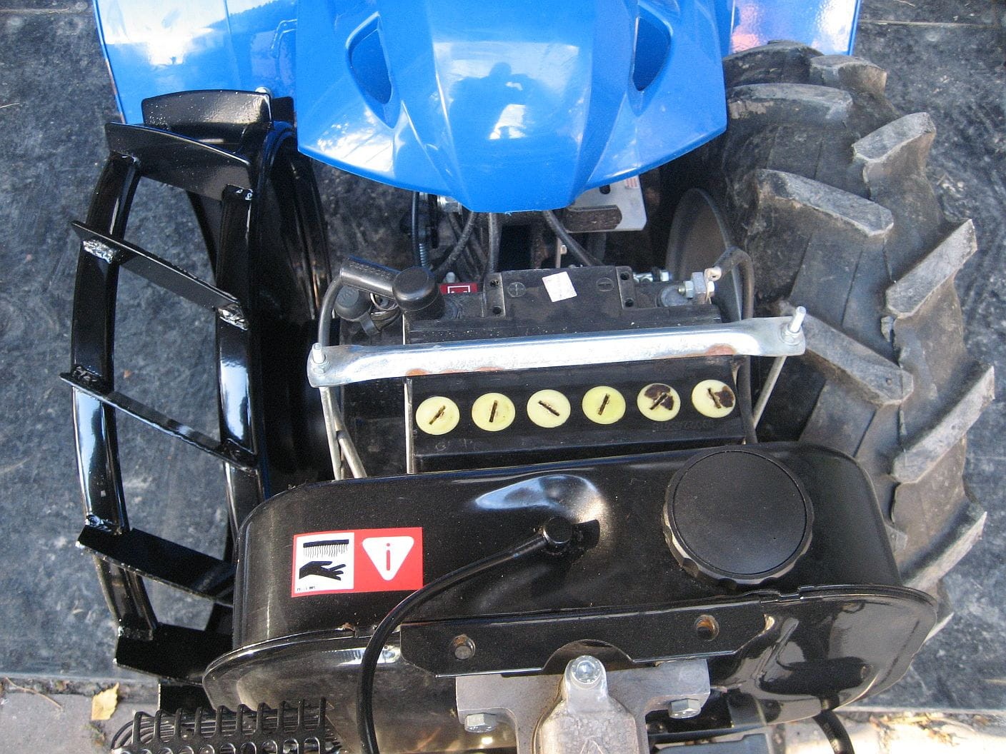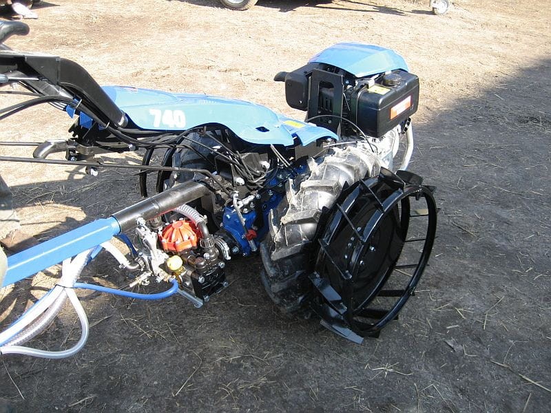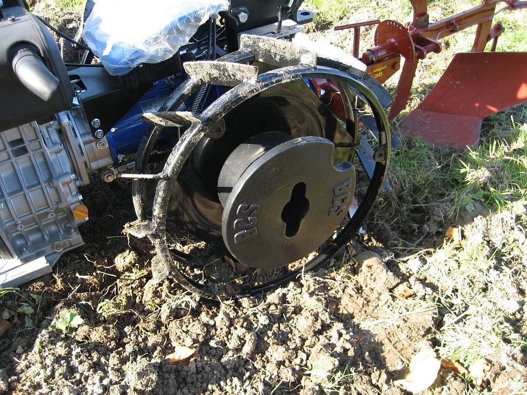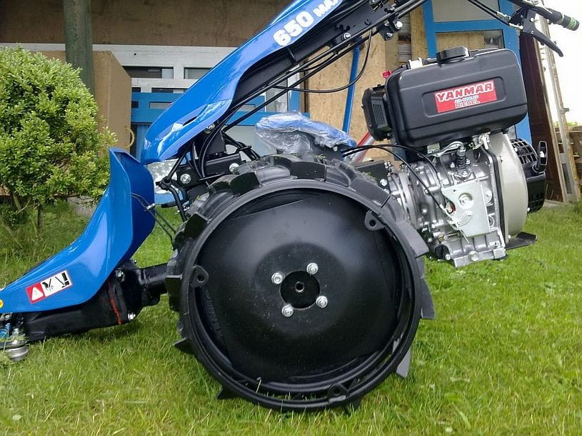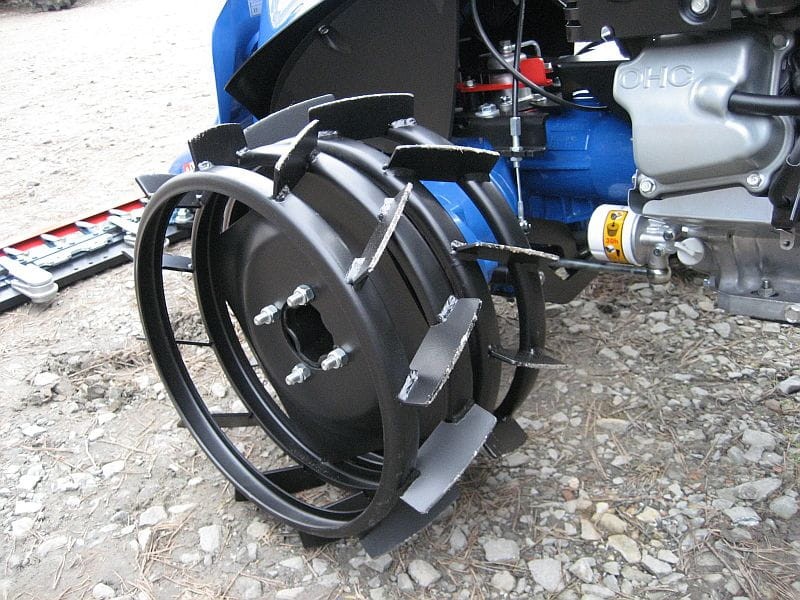 W przypadku ciągnika z silnikiem Yanmar LN100 w wersji z rozruchem elektrycznym, niezbędne jest założenie dystansów do kół (6 cm).