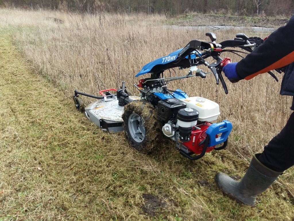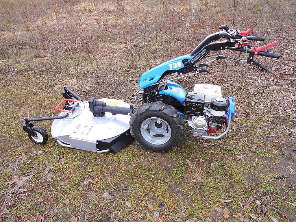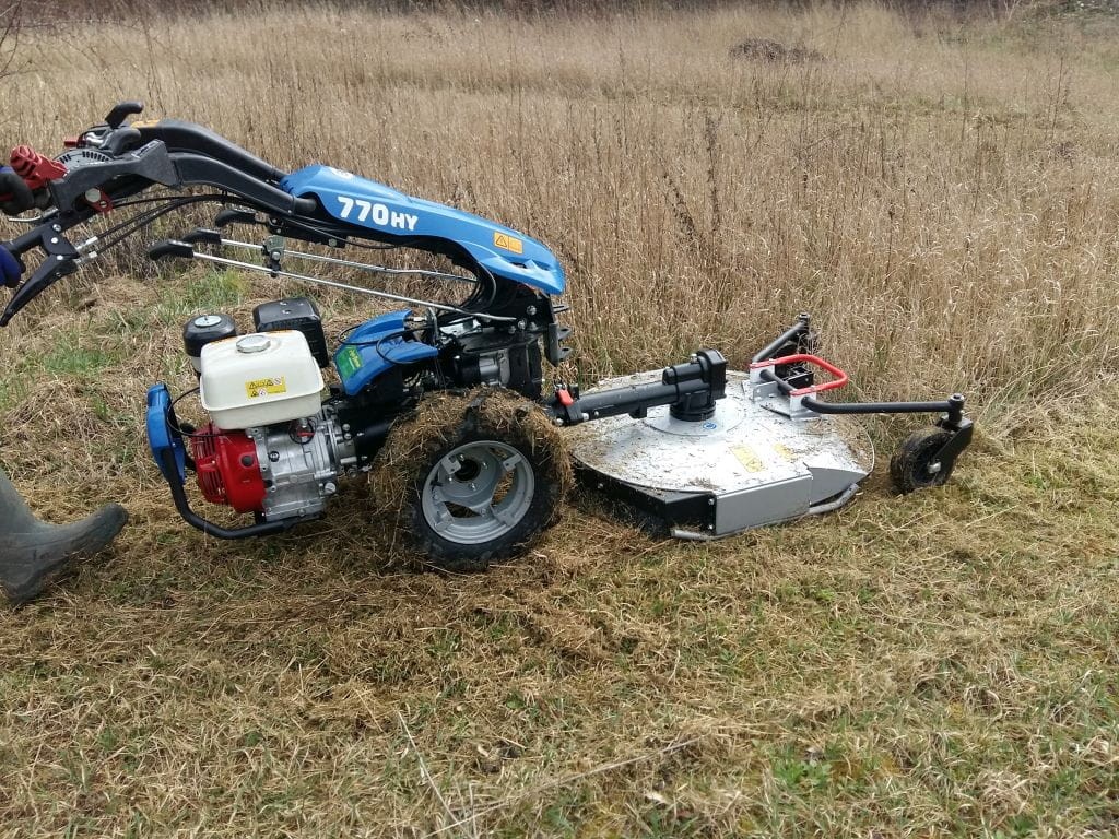 Kosiarka 1- nożowa, mulczująca (obudowa nie posiada wylotu więc trawa jest siekana na bardzo drobne kawałki). Szerokość robocza 80 cm. Przeznaczona do współpracy z ciągnikami jednoosiowymi o mocy minimum 9 KM: BCS 618, 630, 635HY, 660HY, 738, 740, 770HY, 750.