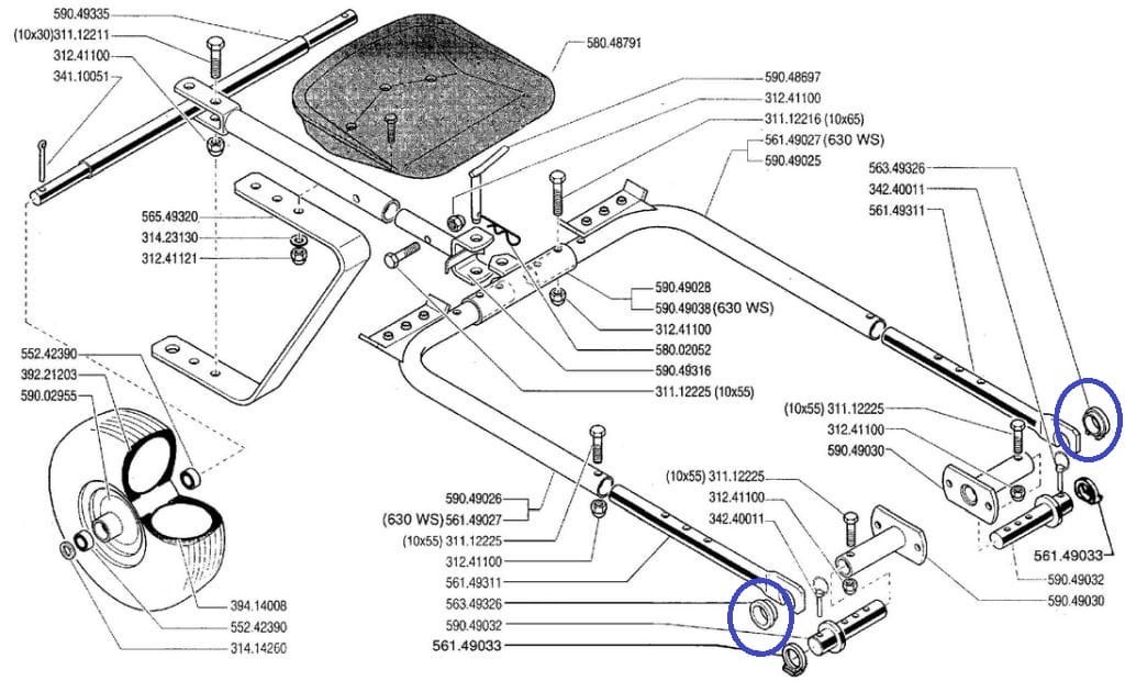 Łożysko ślizgowe wózka dla operatora, przeznaczonego do ciągników jednoosiowych BCS.