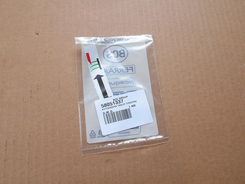 Naklejka oznaczająca regulację wysokości koszenia w kosiarkach nożowych BCS.