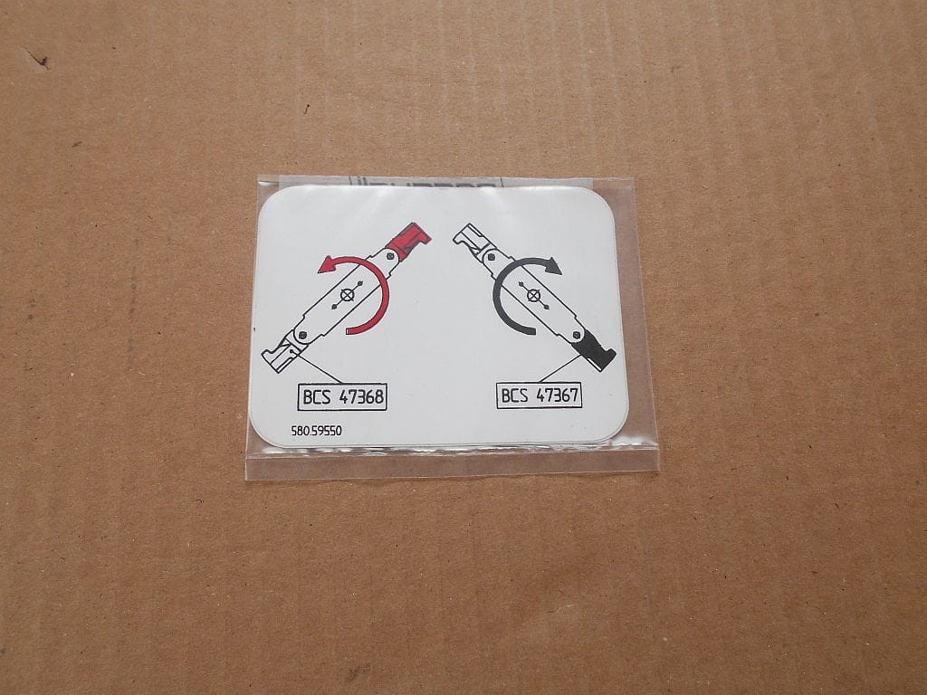 Naklejka oznaczająca kody oryginalnych noży do kosiarek nożowych BCS SILENT.