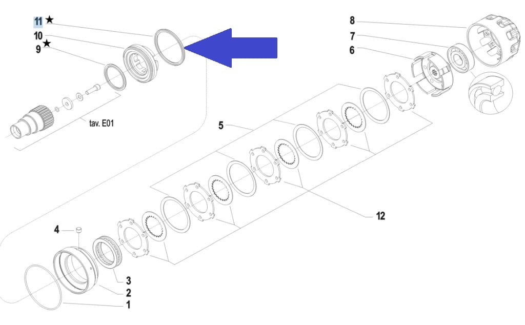 Teflonowy pierścień uszczelniający tłoka układu sprzęgła hydraulicznego PowerSafe do ciągników jednoosiowych BCS.