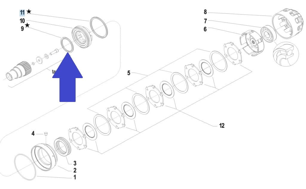 Teflonowy pierścień uszczelniający tłoka układu sprzęgła hydraulicznego PowerSafe do ciągników jednoosiowych BCS.