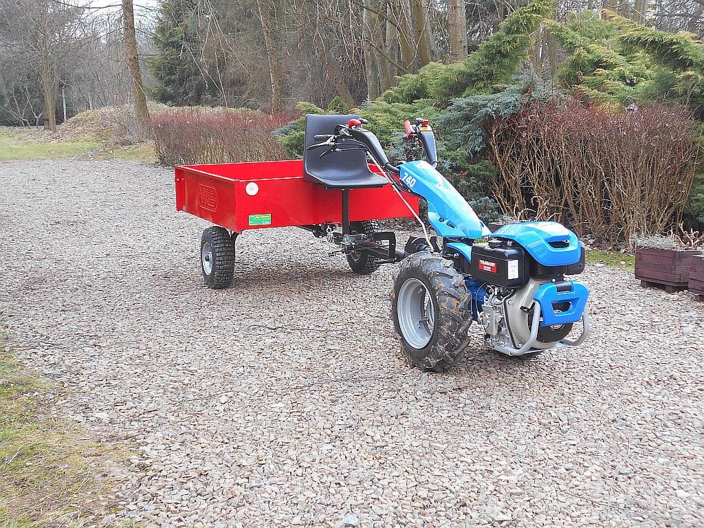 Do połączenia przyczepki z ciągnikiem jednoosiowym niezbędny jest dedykowany do danego modelu ciągnika zaczep narzędzi.