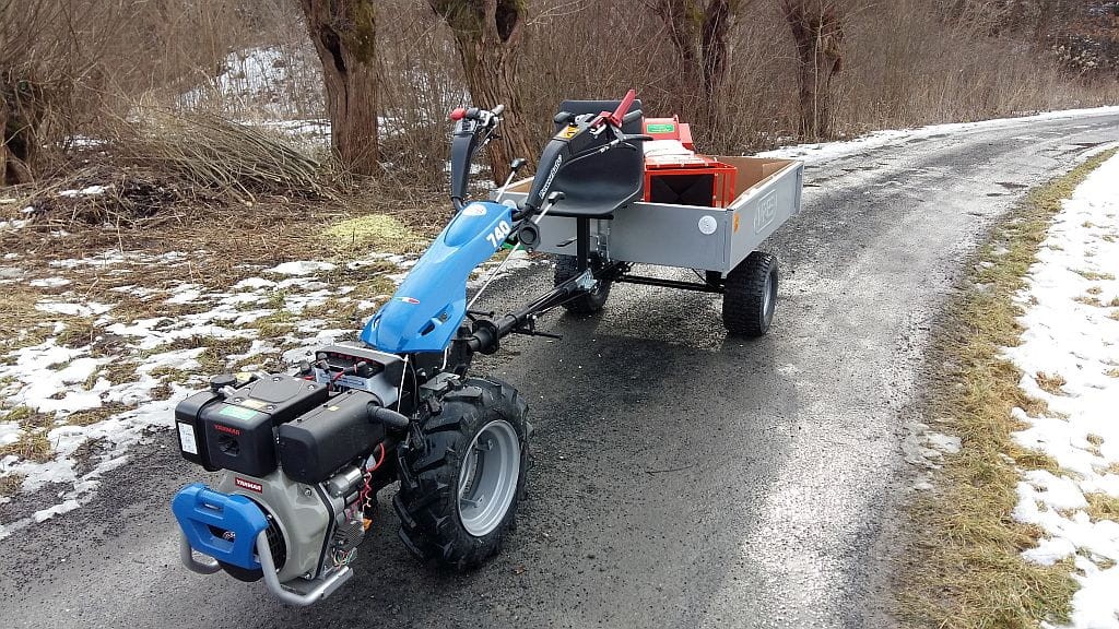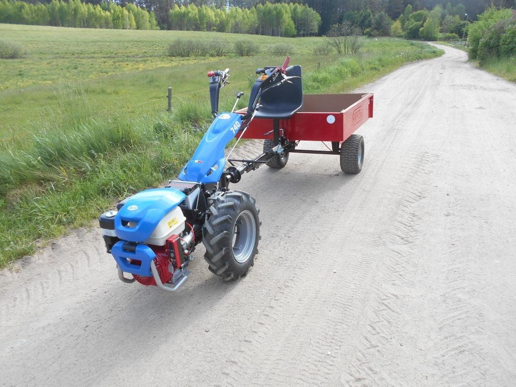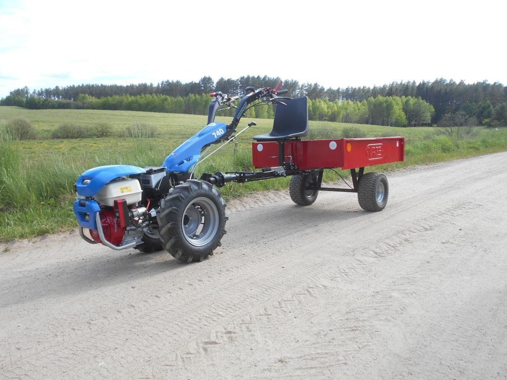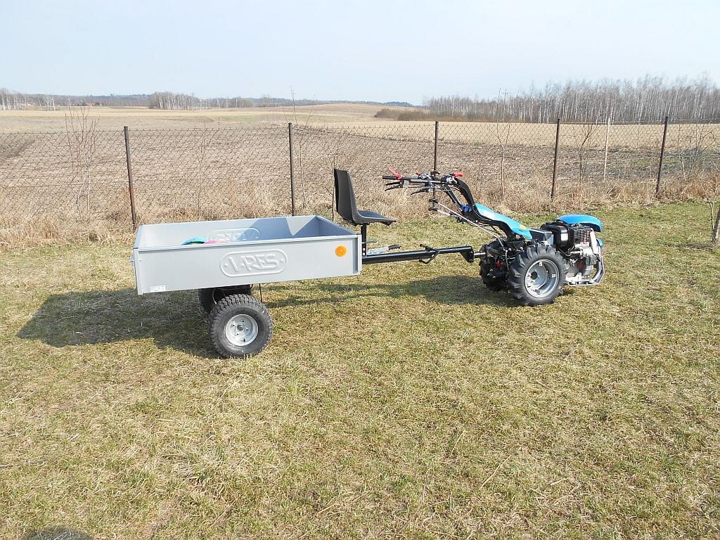 Do połączenia przyczepki z ciągnikiem jednoosiowym niezbędny jest dedykowany do danego modelu ciągnika zaczep narzędzi.