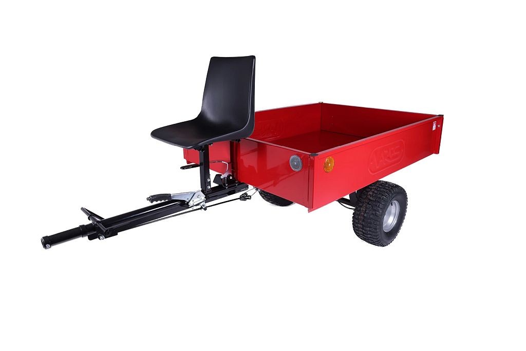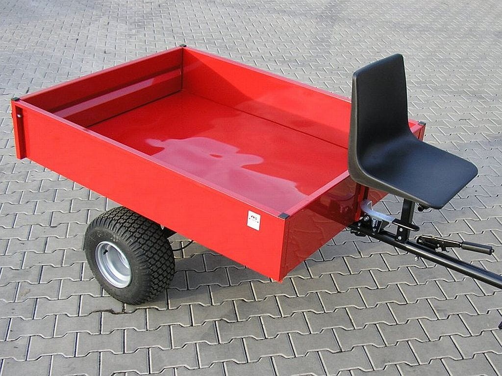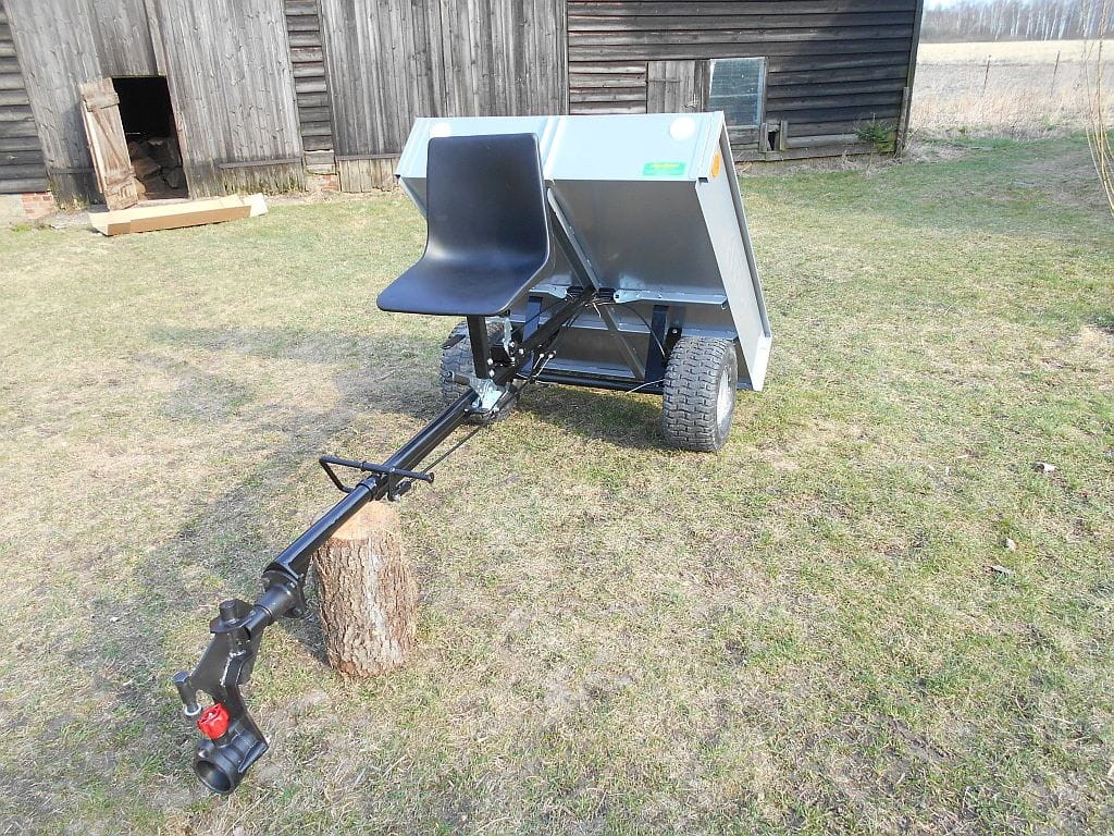 Model IT500. Wymiary 147x109x26 cm. Ładowność 700 kg. Koła 18/8.50-8". Siedzisko operatora, hamulec postojowy. Wywrot do tyłu.