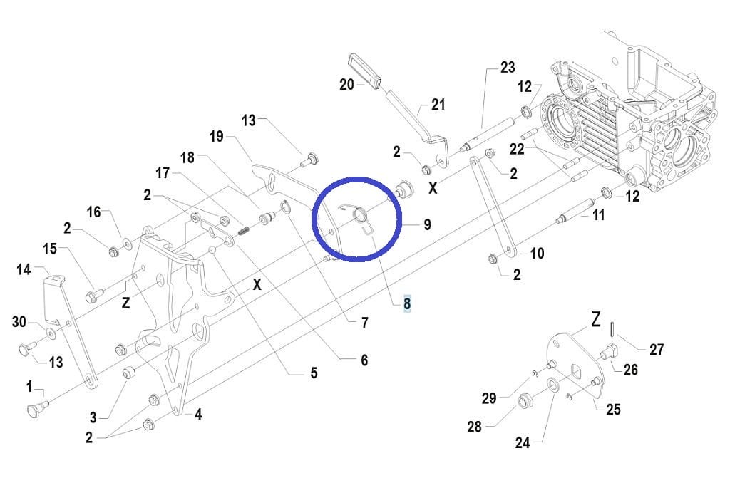 Sprężyna mechanizmu sterowania kierunkiem jazdy do ciągników jednoosiowych BCS.