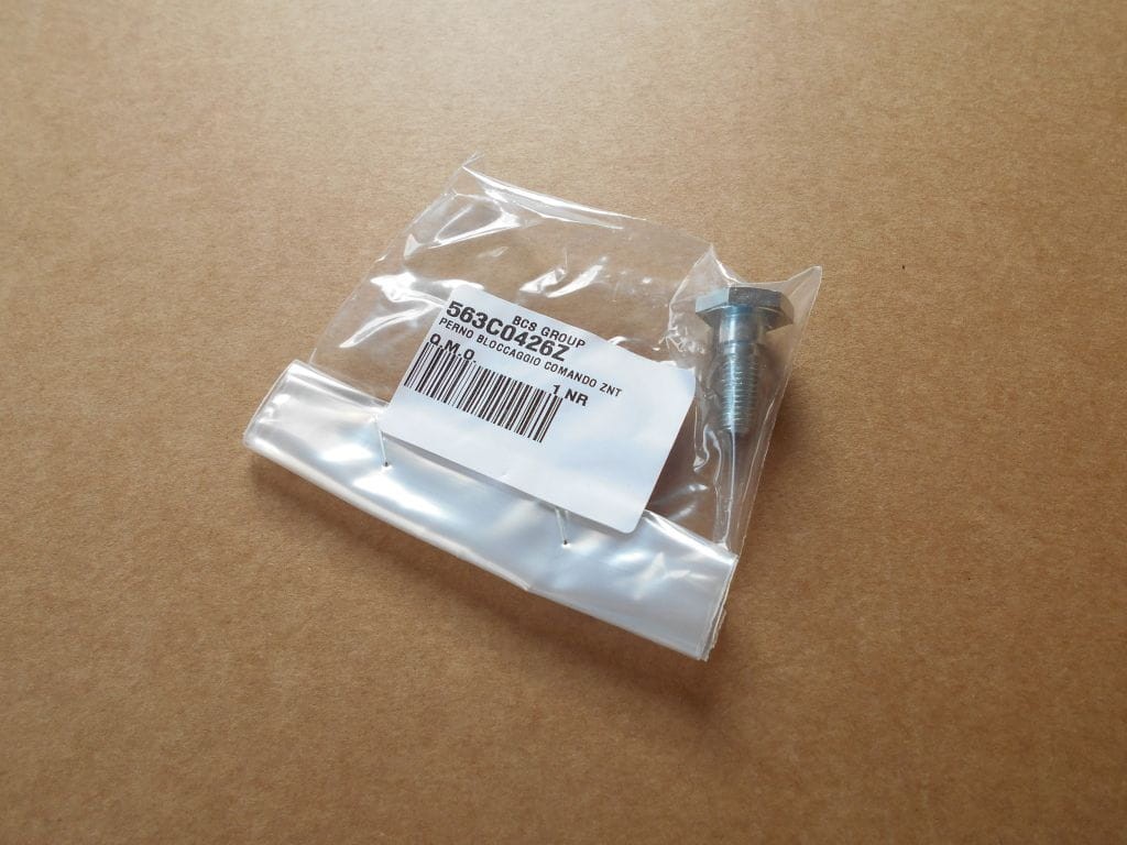 Śruba specjalna, mocująca i jednocześnie ograniczająca ruch wybieraka kierunku jazdy do ciągników jednoosiowych BCS.