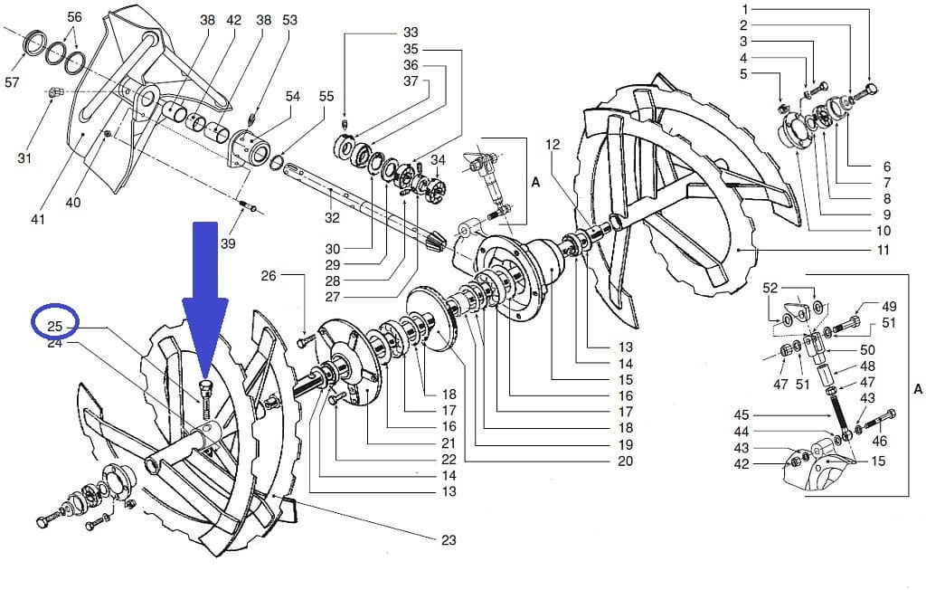 Śruba specjalna, zabezpieczająca wirnik zębaty turbiny do śniegu BERTA.