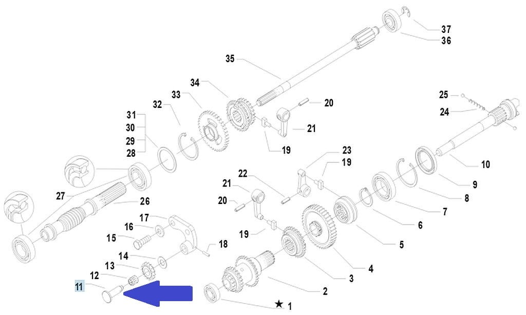 Sworzeń łożyska igiełkowego przekładni do ciągników jednoosiowych BCS.