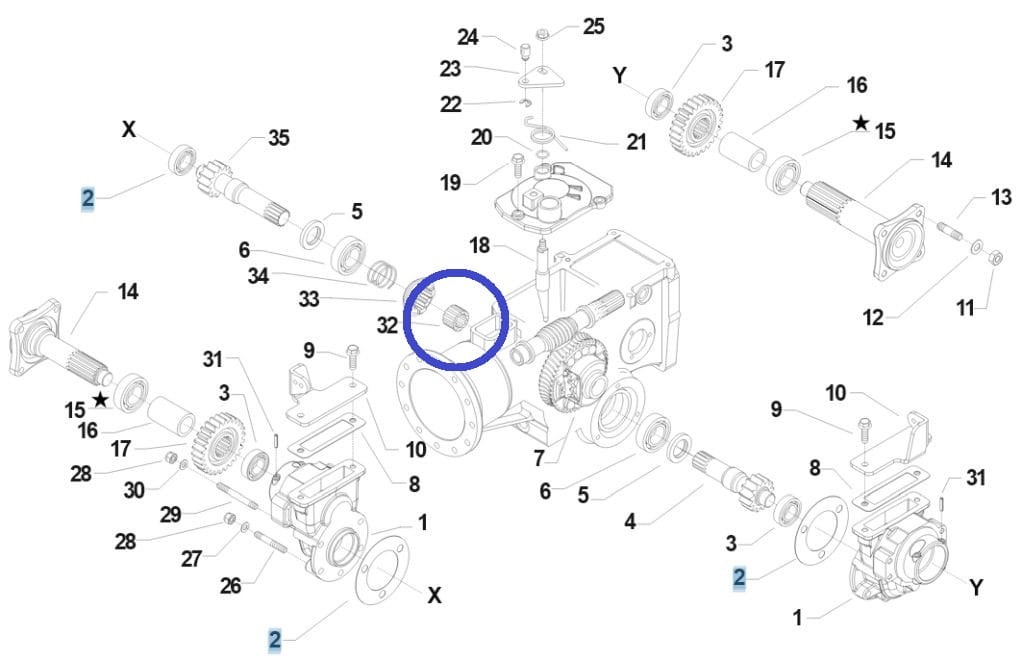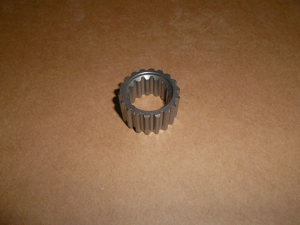 Tuleja z wieńcem zębatym spełniająca rolę dystansu w układzie przeniesienia napędu do ciągników jednoosiowych BCS.