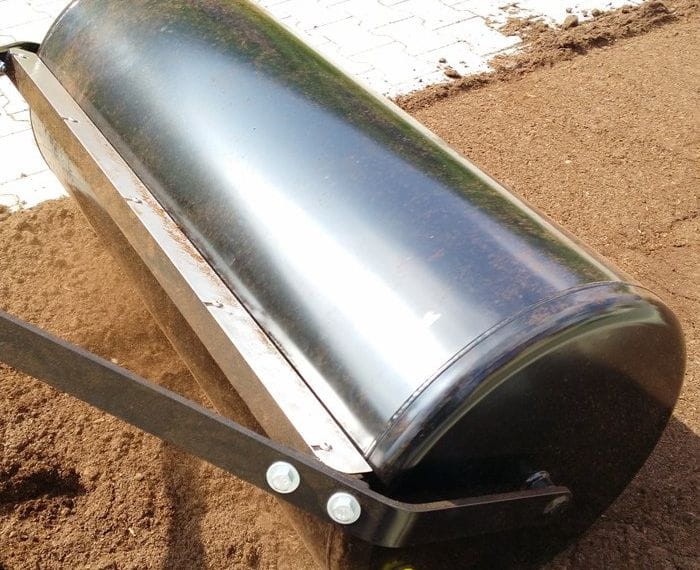 Walec stalowy do wałowania terenu, napełniany wodą w celu zwiększanie masy.