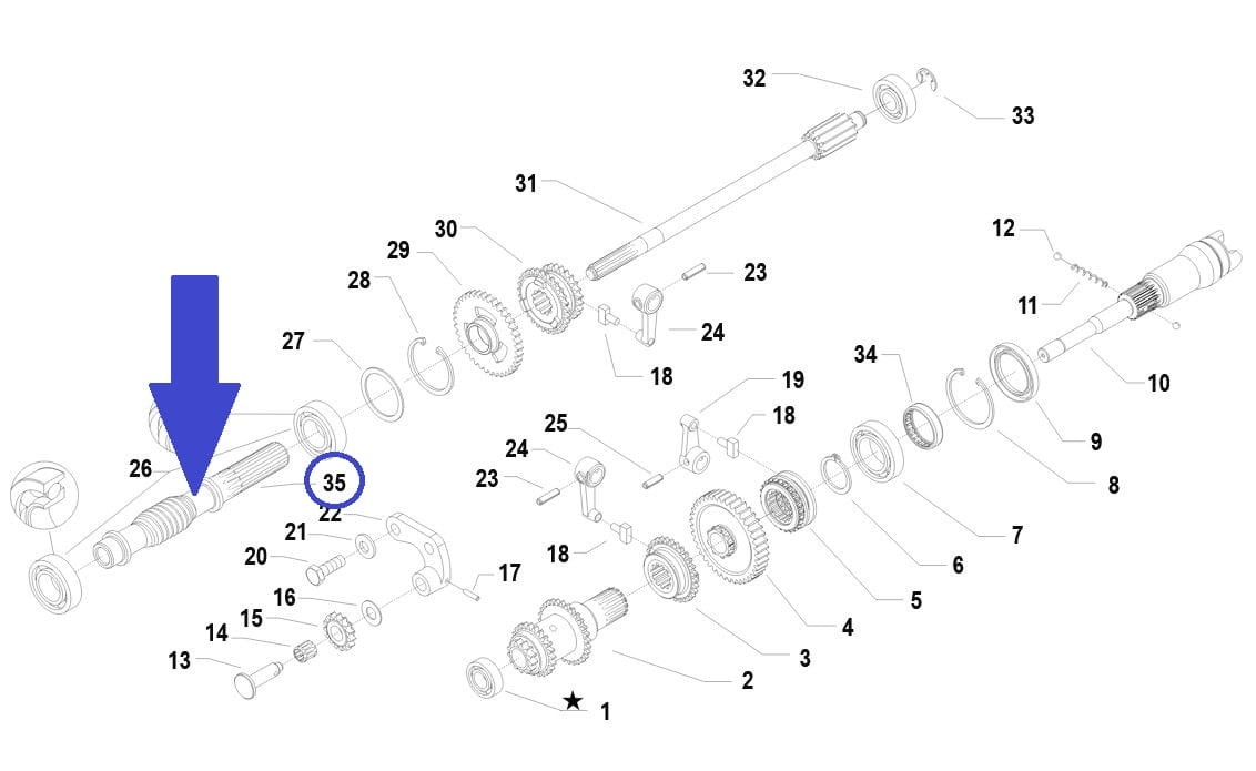 Wałek mechanizmu różnicowego do ciągników jednoosiowych BCS.