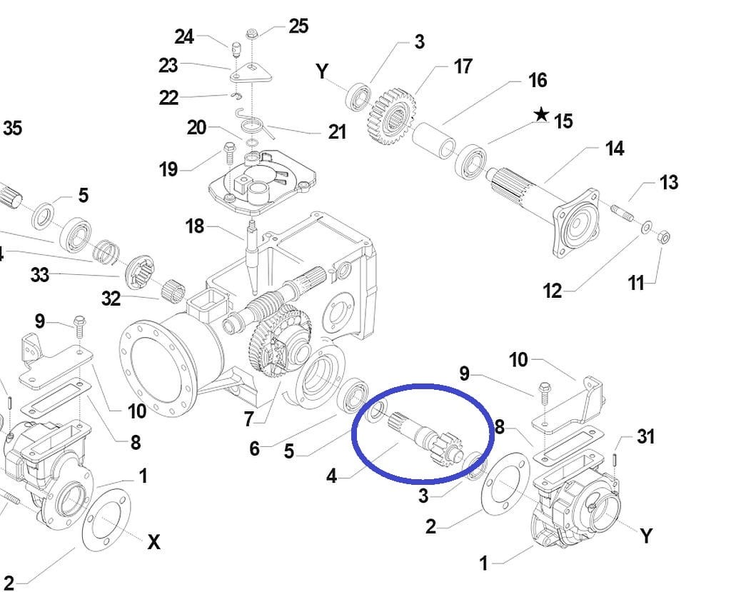 Wałek napędowy zwolnicy (krótki - strona LEWA) do ciągników jednoosiowych BCS.