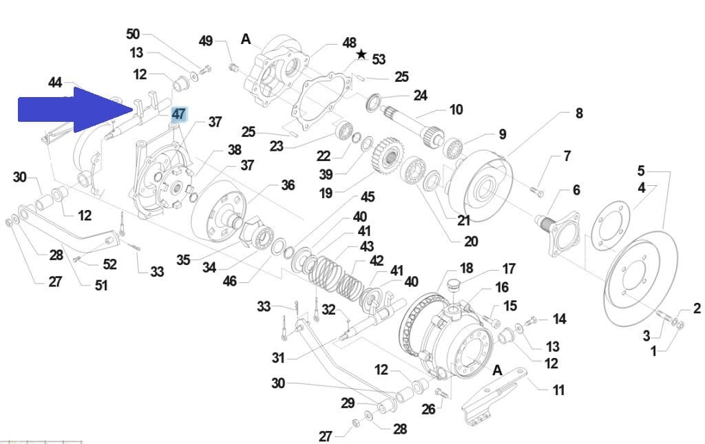 Widełki wyciskowe układu sterowania skrętem do ciągników jednoosiowych BCS.