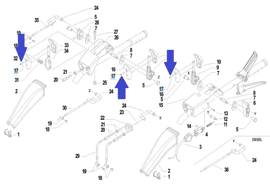 Wkręt mocowania rękojeści dźwigni sterowania do ciągników jednoosiowych BCS.