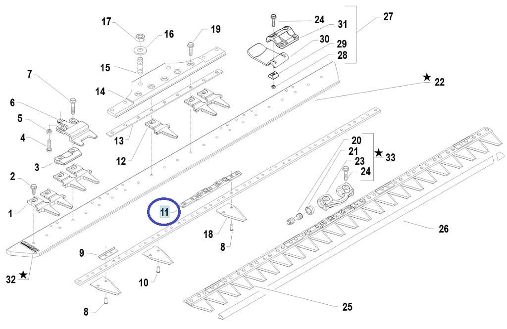 Wspornik zębów listew tnących kosiarek listwowych BCS.